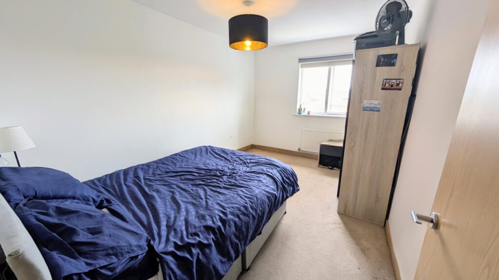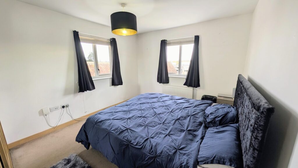 Spacious double bedroom with fitted wardrobes, dual aspect windows and a luxurious ensuite shower room.